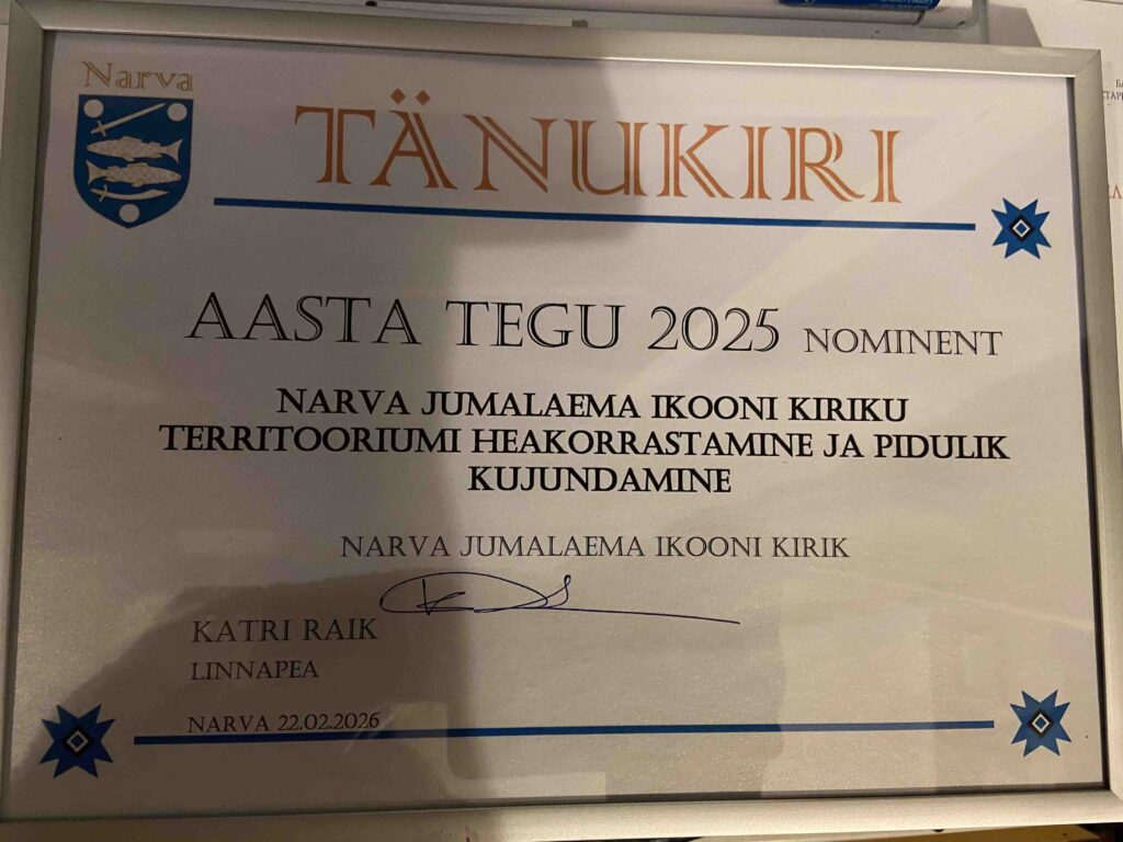 Среди номинантов на звание «Дело года 2025» был отмечен и храм Нарвской иконы Божией Матери — за благоустройство и украшение территории.